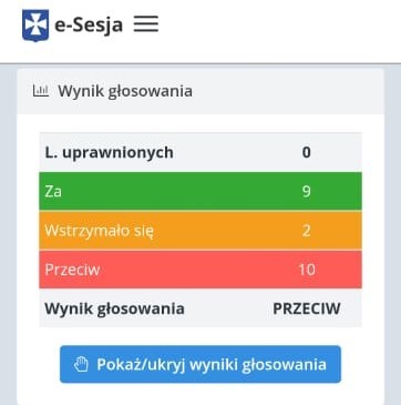 Na grafice zobaczycie dzisiejsze głosowanie w sprawie wyrażenia zgody na zamianę działek. Dla przypomnienia, miasto miało oddać deweloperowi działki przy Żwirowni w zamian za działkę na ul. Spacerowej.![]()